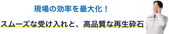 私たちは中間処理のプロとして、役目を終えたコンクリートを再び価値ある資源へ再生させています。現場の廃棄物を「ゴミ」で終わらせず、高度な技術で次世代のインフラを支えることが使命です。